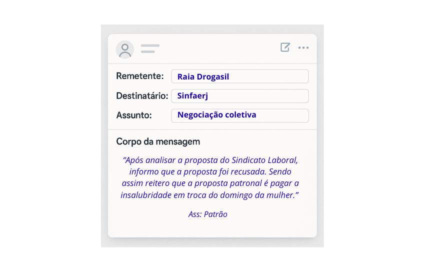 Para o Sinfaerj, a resposta da empresa expõe a contradição entre o discurso público da Raia Drogasil, que se apresenta como uma empresa que “cuida de pessoas”, e sua prática real, marcada pela falta de diálogo e pela desvalorização das trabalhadoras.