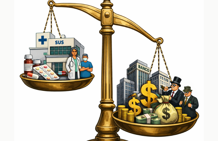 No entanto, essa narrativa omite um dado escandaloso. Enquanto se discute o corte de centavos na assistência farmacêutica ou na atenção básica, o orçamento público permanece drenado por uma estrutura de juros e encargos da dívida que beneficia, quase exclusivamente, o sistema financeiro. Trata-se de uma defesa descarada do investimento parasitário: blinda o lucro dos rentistas enquanto rotula como “insustentável” o financiamento de um direito fundamental.